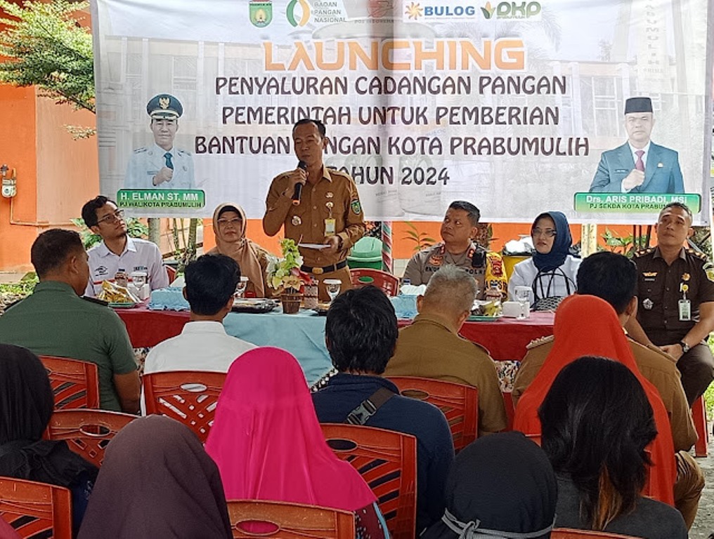 PRABUMULIH,– Pj Walikota Prabumulih, H.Elman,ST,MM melaksanakan Launching Penyaluran CPP untuk pemberian bantuan pangan tahun 2024, yang berlokasi di Kantor Kelurahan Gunung Ibul Kecamatan Prabumulih Timur Kota Prabumulih, Senin (5/2/2024).