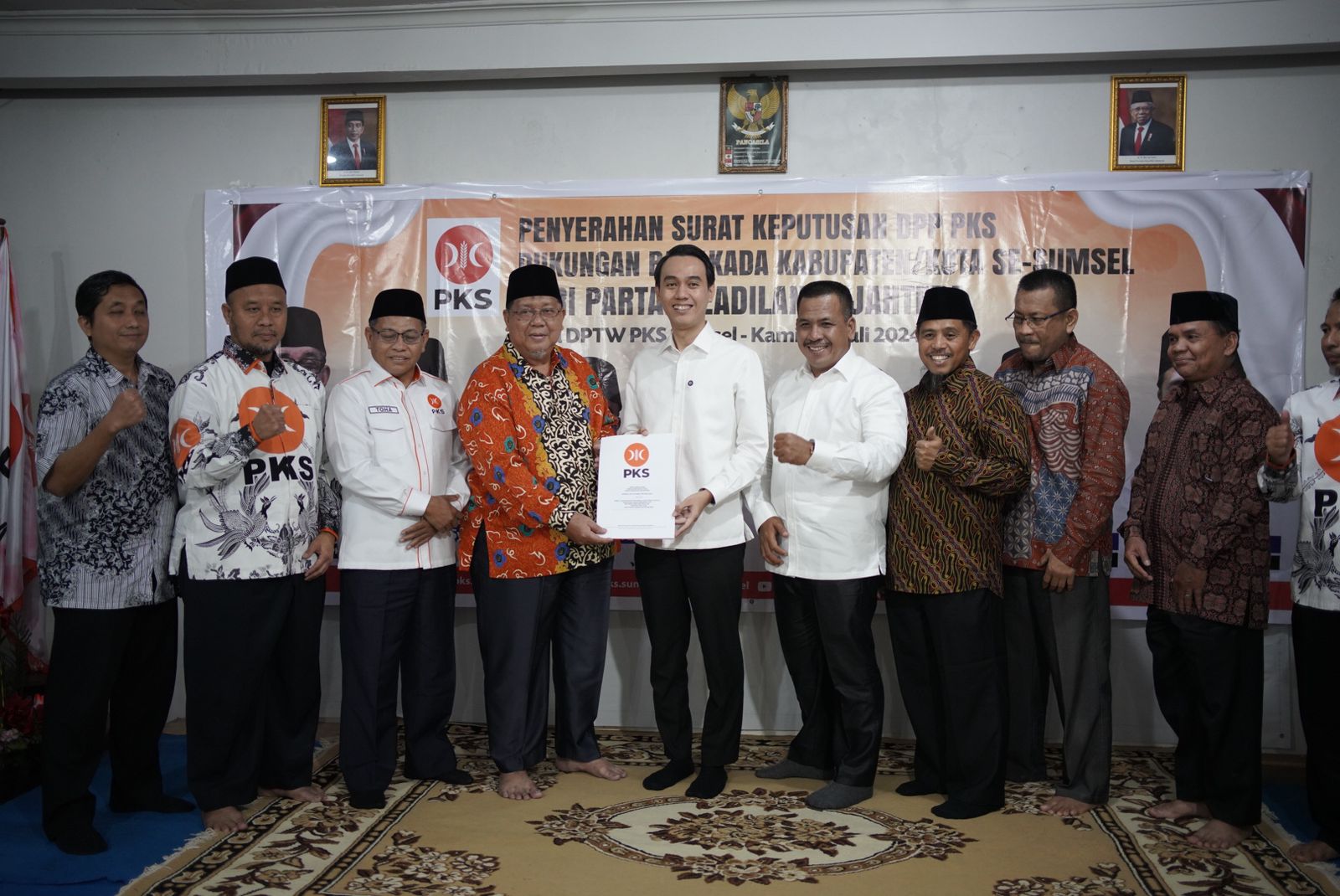 Penyerahan Surat Keputusan (SK) Dewan Pimpinan Pusat (DPP) PKS Dukungan Bakal Calon Kepala Daerah (Bacakada) Kabupaten OKI dari PKS diterima secara langsung oleh Calon Bupati dan Wakil Bupati, H Muchendi serta Supriyanto Bersama sejumlah pengurus Partai Demokrat Sumsel dan OKI.