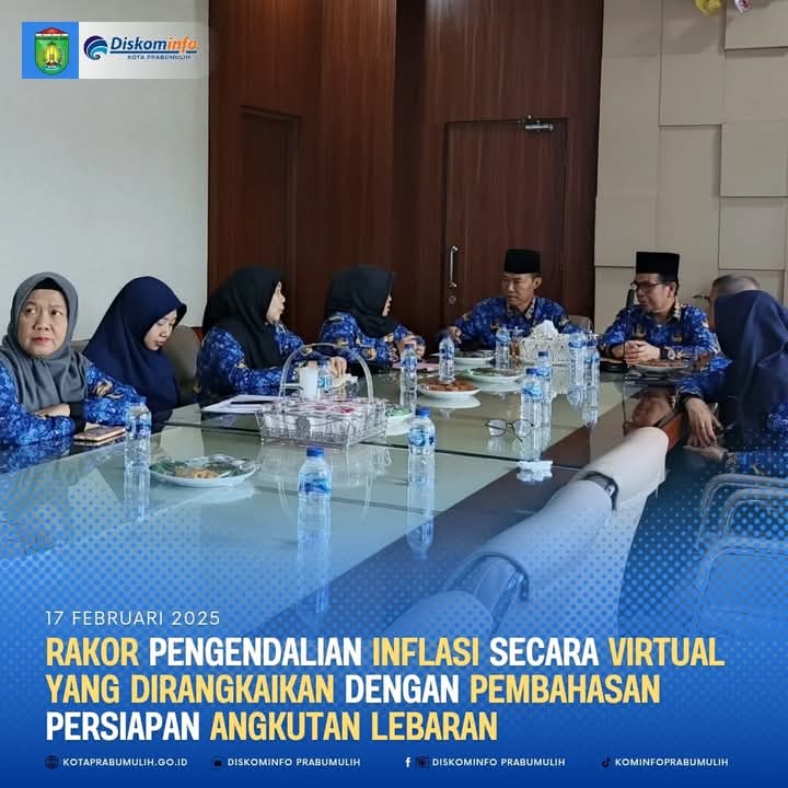 Sriwijaya Nusantara com (MSN) Prabumulih.Penjabat (Pj) Wali Kota Prabumulih H. Elman, ST, MM menghadiri Rapat Koordinasi (Rakor) Bidang Pengendalian Inflasi di Daerah Tahun 2025 dirangkaikan dengan Pembahasan Persiapan Angkutan Lebaran Tahun 2025 secara daring di Ruang Rapat Wali Kota Prabumulih, Senin, (17/2/2025).