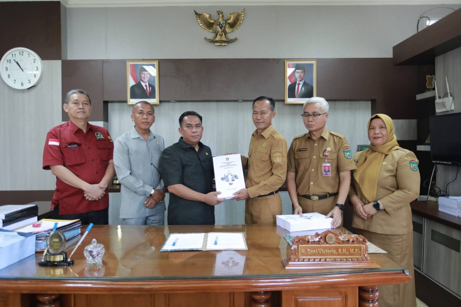 Dalam kesempatan itu, Ketua DPRD Deni Victoria menerima dokumen penyampaian Raperda LPJ tahun anggaran 2024 dari Sekda, Senin 30 Juni 2025.