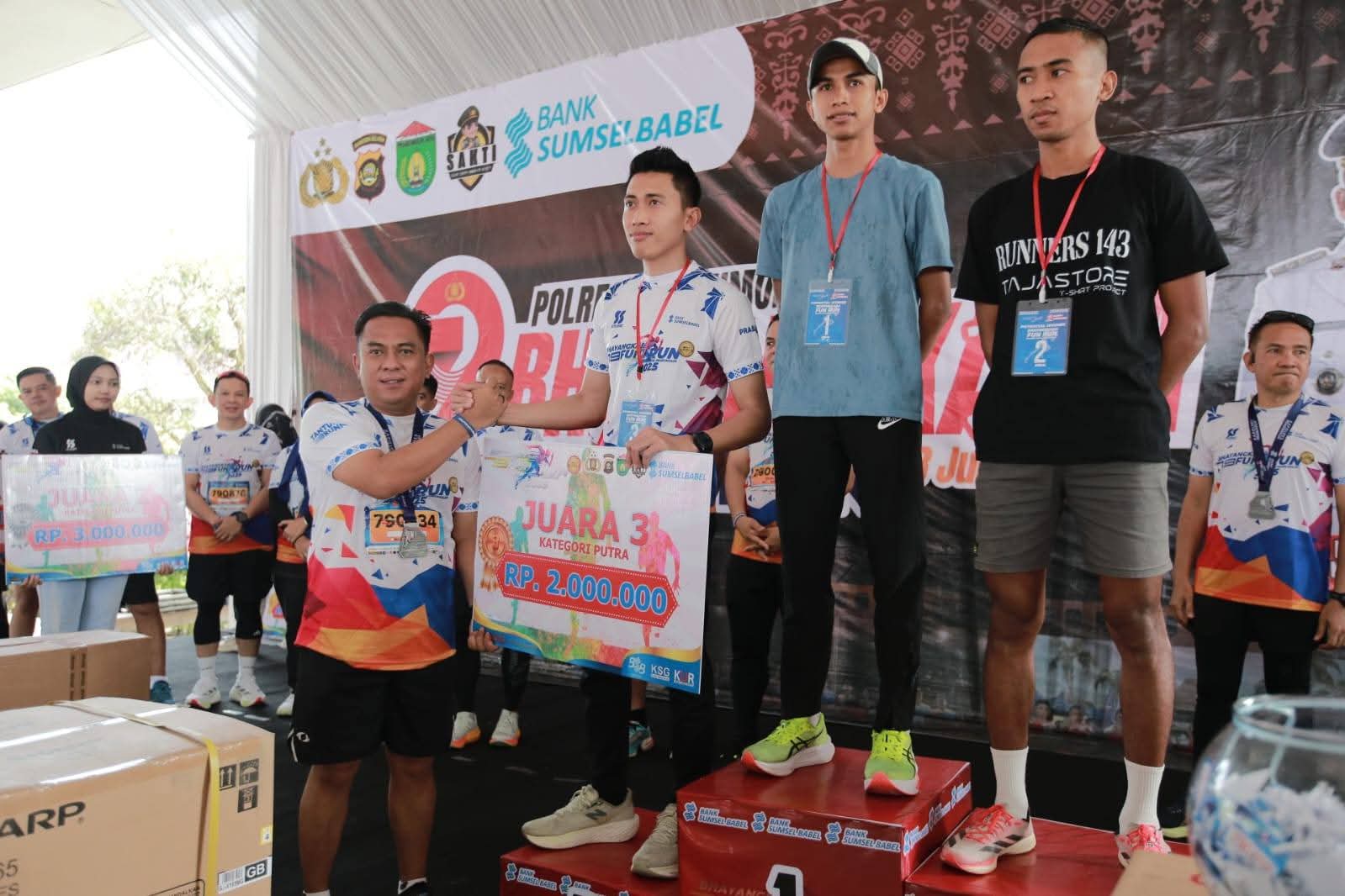 Pada kesempatan ini juga, Deni mengapresiasi kepada seluruh pihak yang terlibat atas suksesnya fun run 5 km Polres Prabumulih.