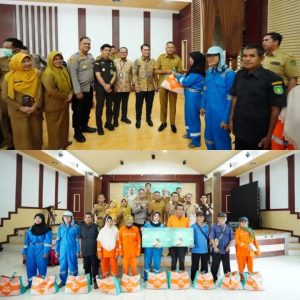 Walikota Prabumulih Serahkan Bantuan Dari Bank BNI Kepada Pasukan Kuning Dan Petugas Taman.