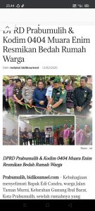 Ketua DPRD Prabumulih Bersama Kodim 0404 Muara Enim Resmi Bedah Rumah Warga Kel Gunung Ibul Barat Kec Prabumulih Timur.