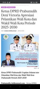 Ketua DPRD Kota Prabumulih Mengucapkan Selamat Atas Di Lantik Walikota Dan Wakil Walikota Prabumulih Periode 2025-2030